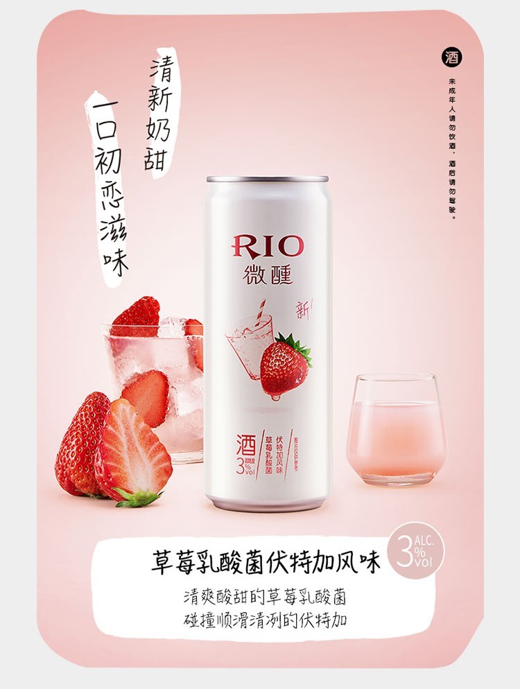 • RIO锐澳 草莓乳酸菌风味330ml/罐 微醺鸡尾酒果味预调酒