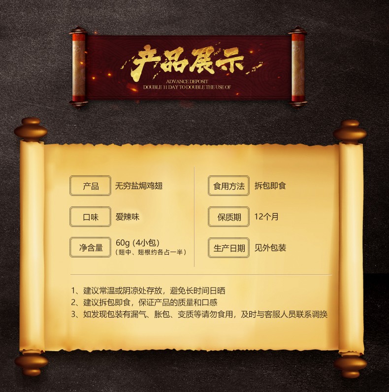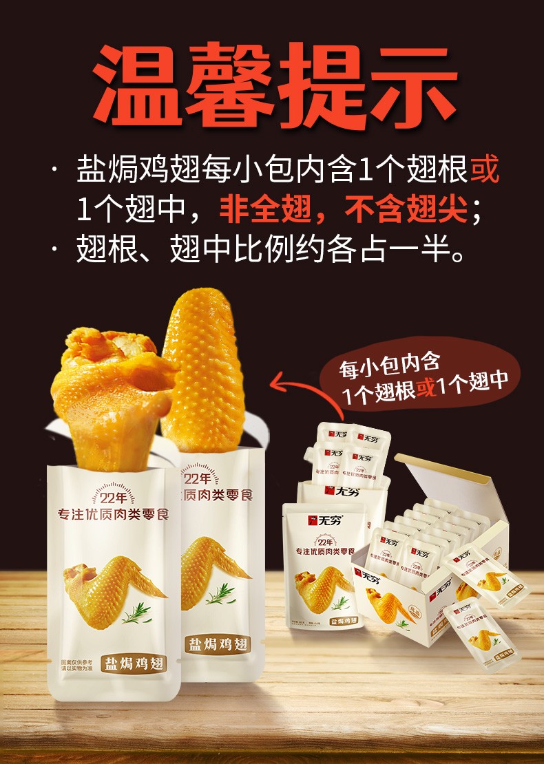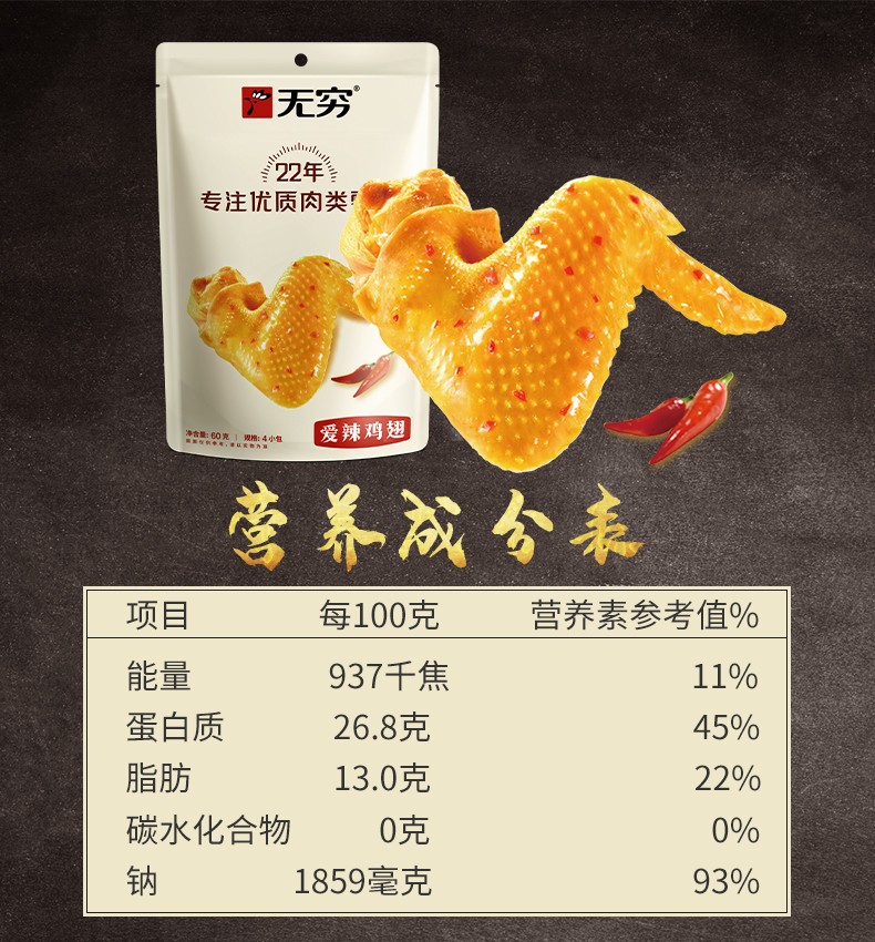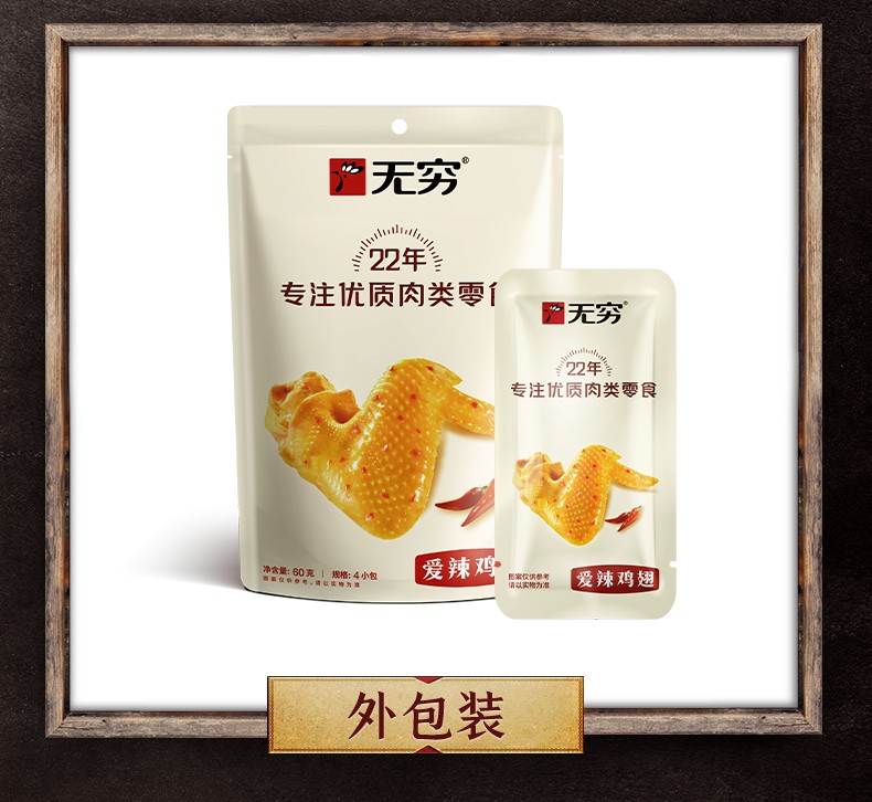 • 无穷 爱辣鸡翅 60g/4小包 小鸡翅中休闲零食即食熟食肉干肉脯