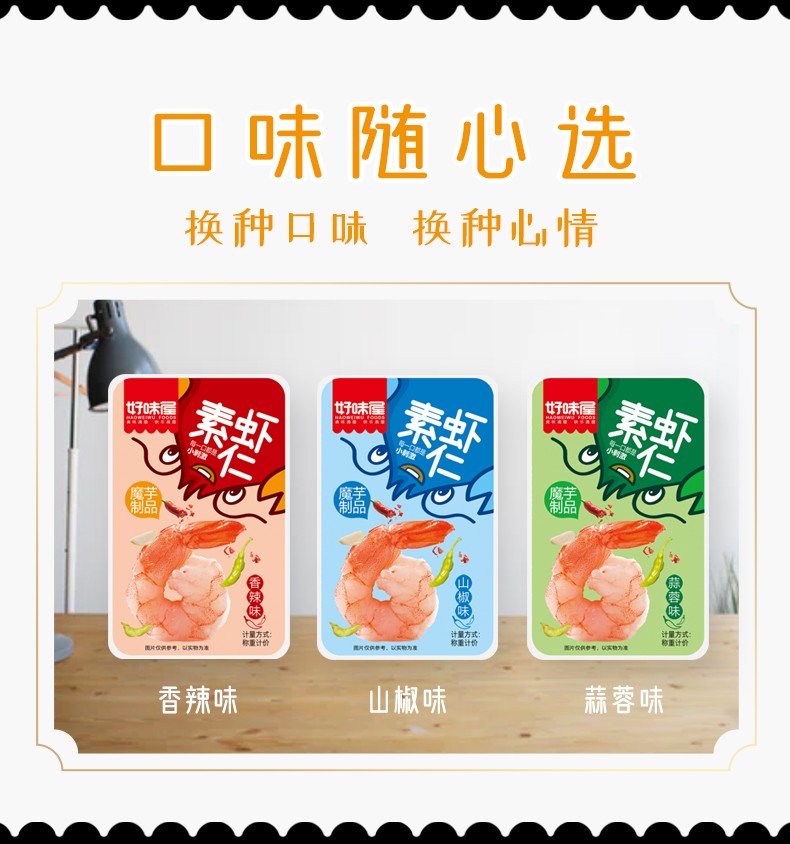 • 好味屋 魔芋素虾仁 20g 魔芋爽素毛肚辣条素肉麻辣卤味熟好吃的儿童素解馋休闲零食品小吃 【散装素虾仁】随机混合口味20小包