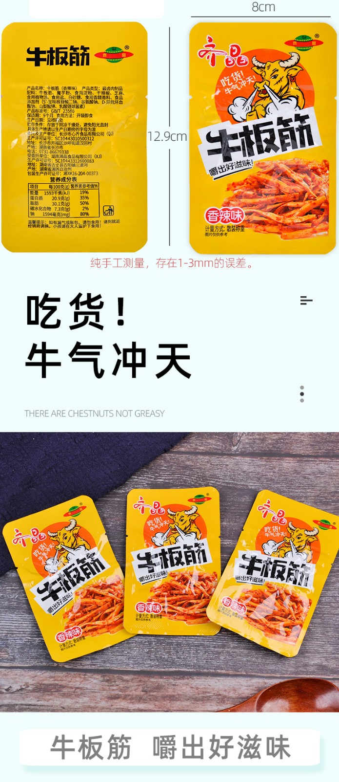 • 齐晶牛板筋 香辣味 20g 小包装牛筋熟食 湖南特产休闲解馋零食品