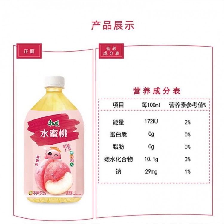 • 康师傅水蜜桃汁 1000ml/瓶 水果味饮料瓶装饮品1升