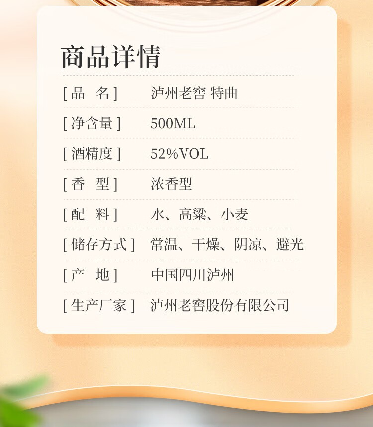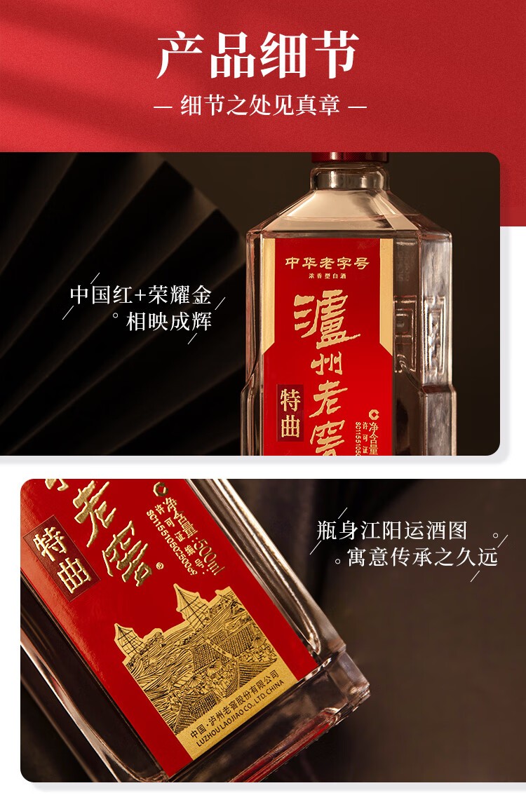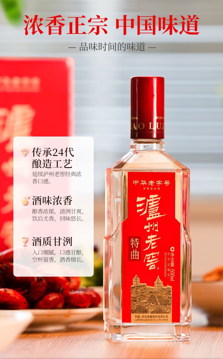• 泸州老窖特曲 52度500ml 浓香型白酒 老字号 单瓶装(新老包装年份随机)