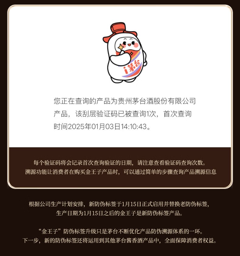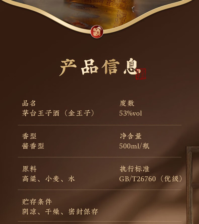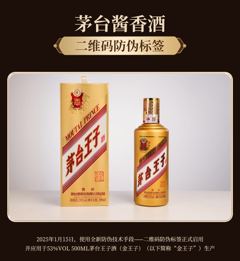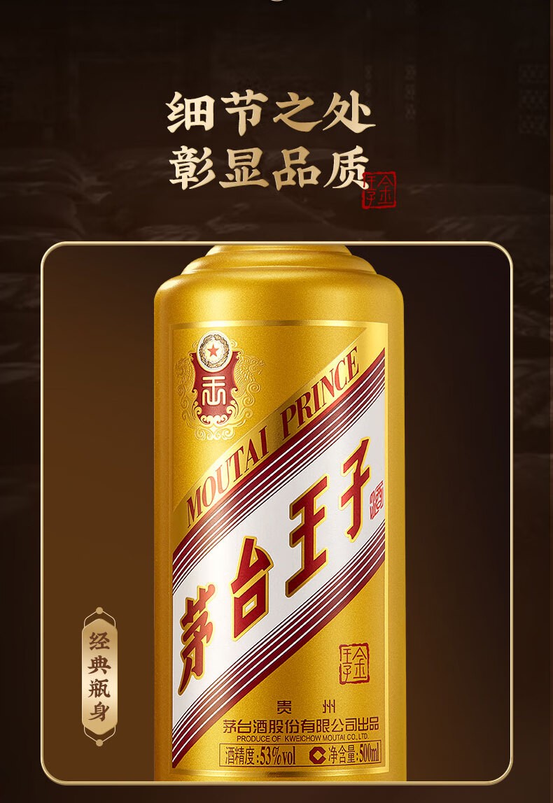 • 茅台金王子 酱香型白酒 53度 500ml 茅台王子酒 单瓶装