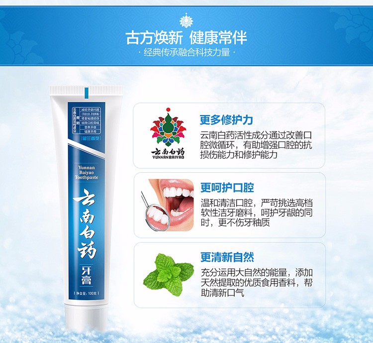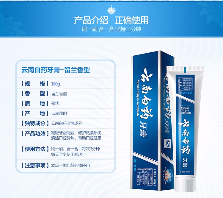 • 云南白药牙膏 留兰香型 减轻牙龈出血祛除口腔异味 180g