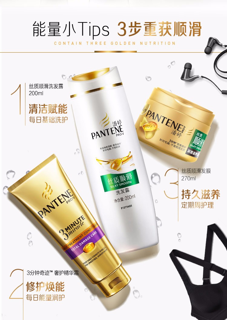• 潘婷洗发水 丝质顺滑 秀发能量水官方正品 200ml
