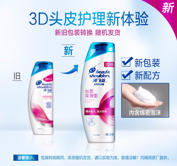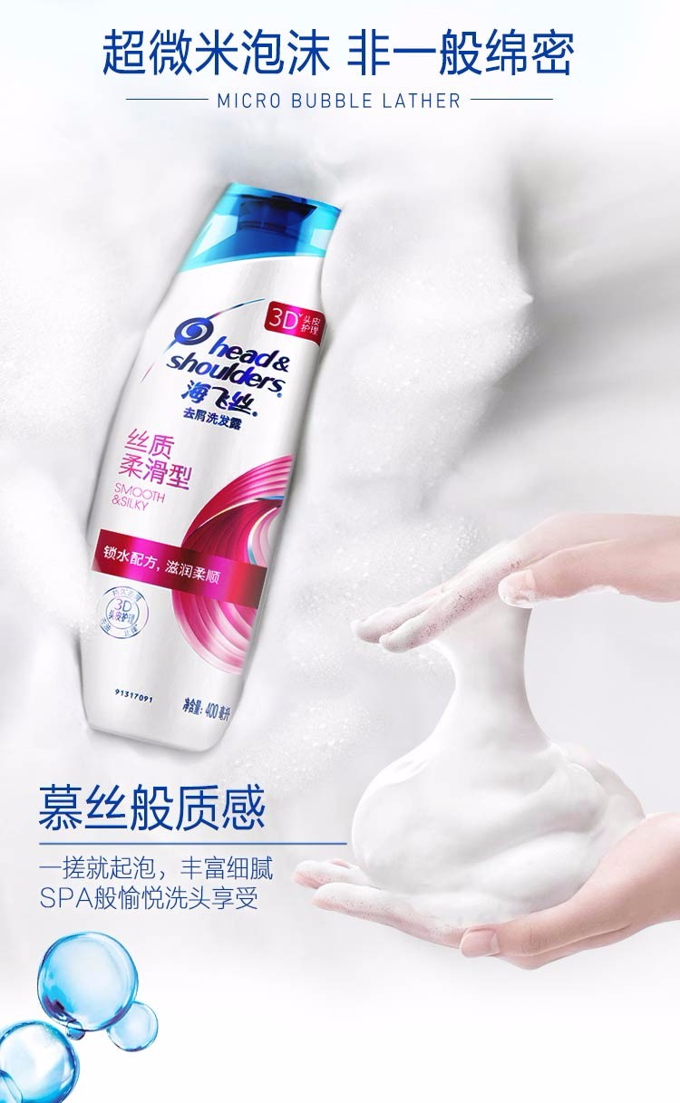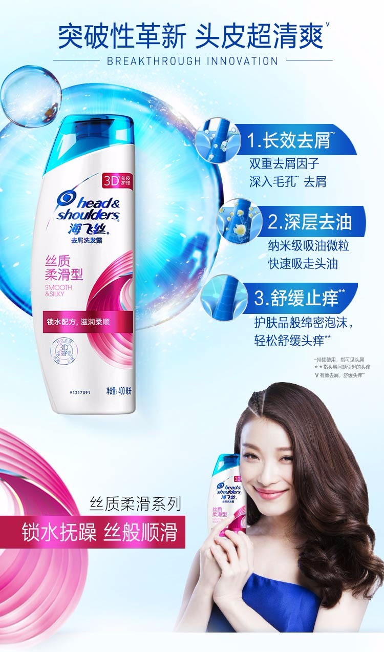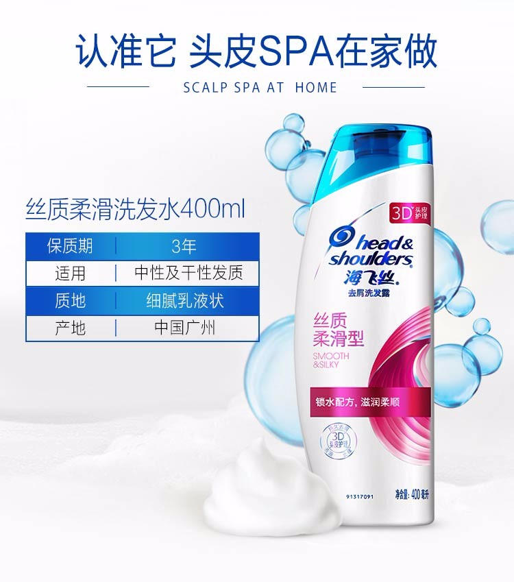 • 海飞丝 去屑洗发水 锁水配方丝质柔滑型400ml