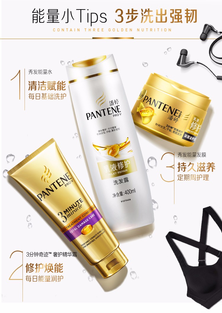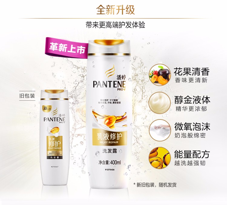 • 潘婷洗发水 乳液修护洗发露 头发修复秀发能量水 400ml