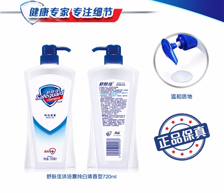 • 舒肤佳沐浴露 男女家庭持久留香保湿纯白沐浴乳720ml