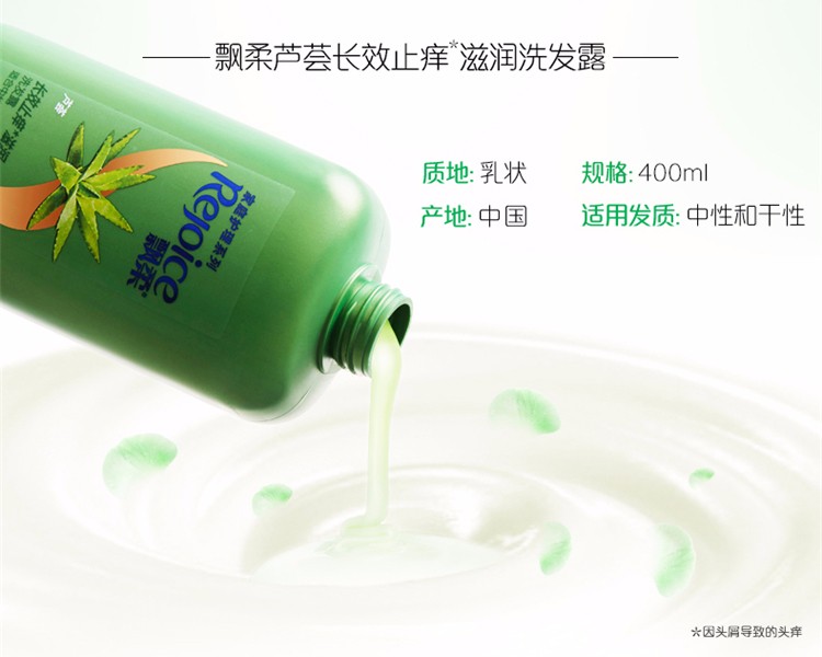 • 飘柔洗发水 家庭护理芦荟滋润洗发露400ml柔顺止痒