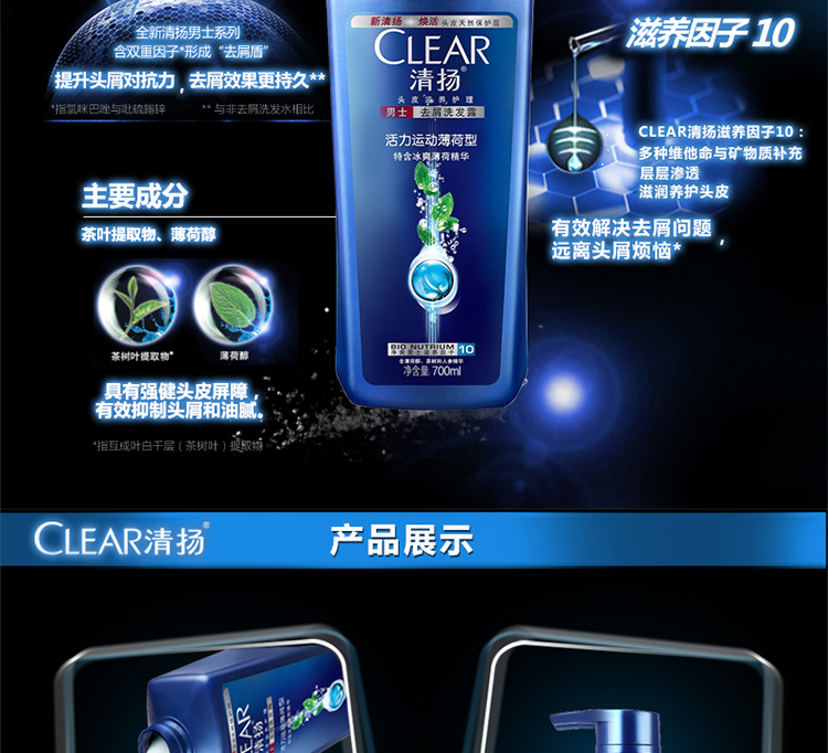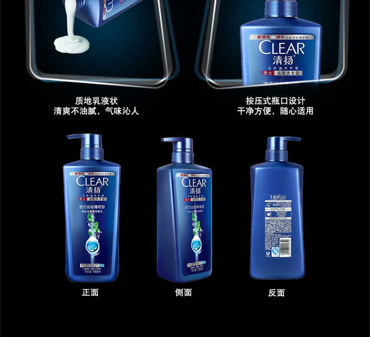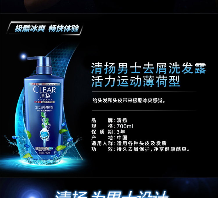 • 清扬男士去屑洗发水 活力运动薄荷700ml清爽控油去屑止痒