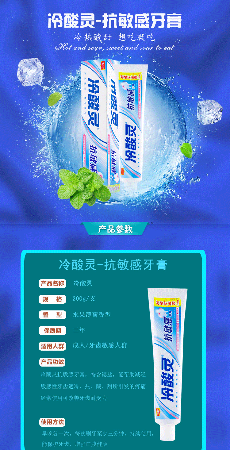 • 冷酸灵双重抗敏感牙膏 特惠装200g水果薄荷