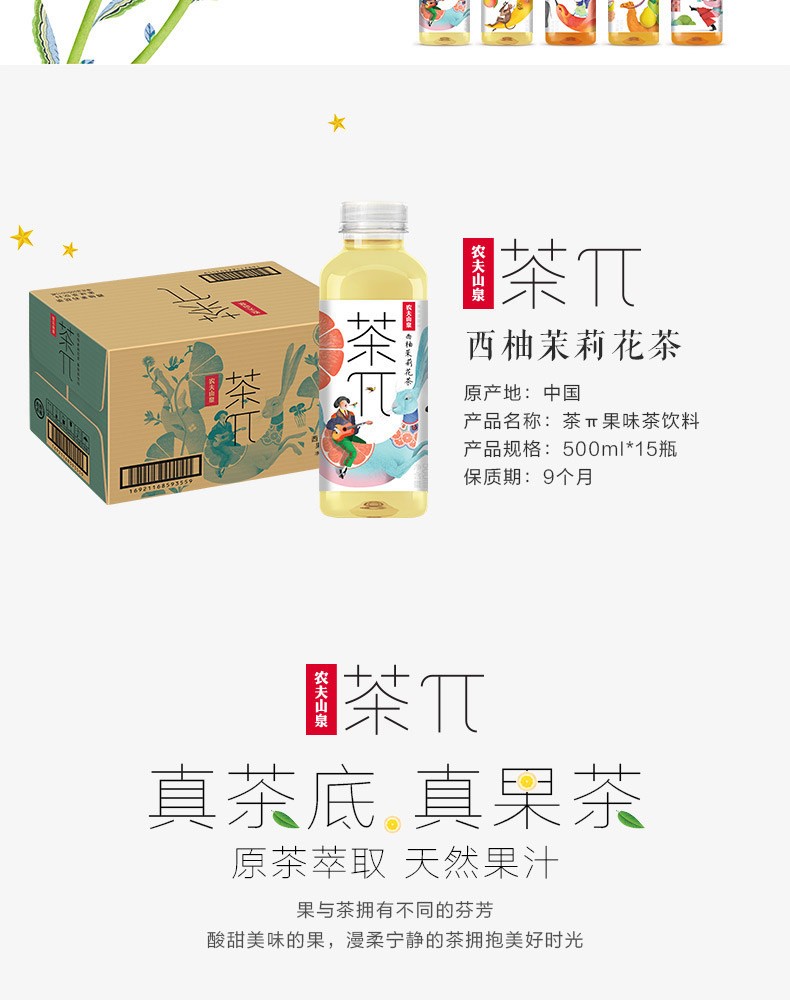 茶派 西柚茉莉花茶 果味茶饮料 茶π 500ml 农夫山泉