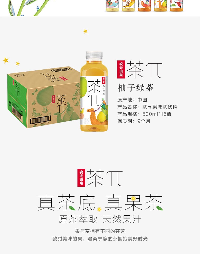 茶派 柚子绿茶 果味茶饮料 茶π 500ml 农夫山泉