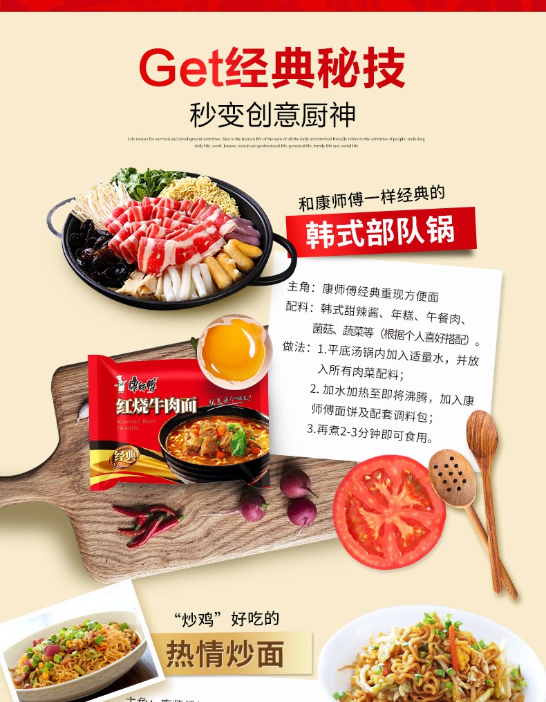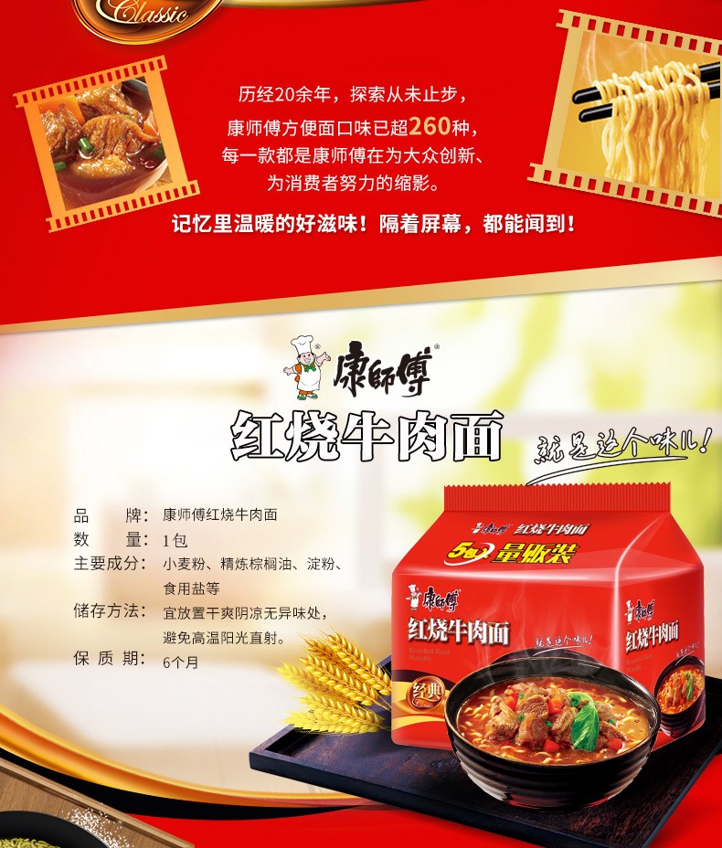 康师傅 经典袋红烧牛肉面 100g 方便面泡面