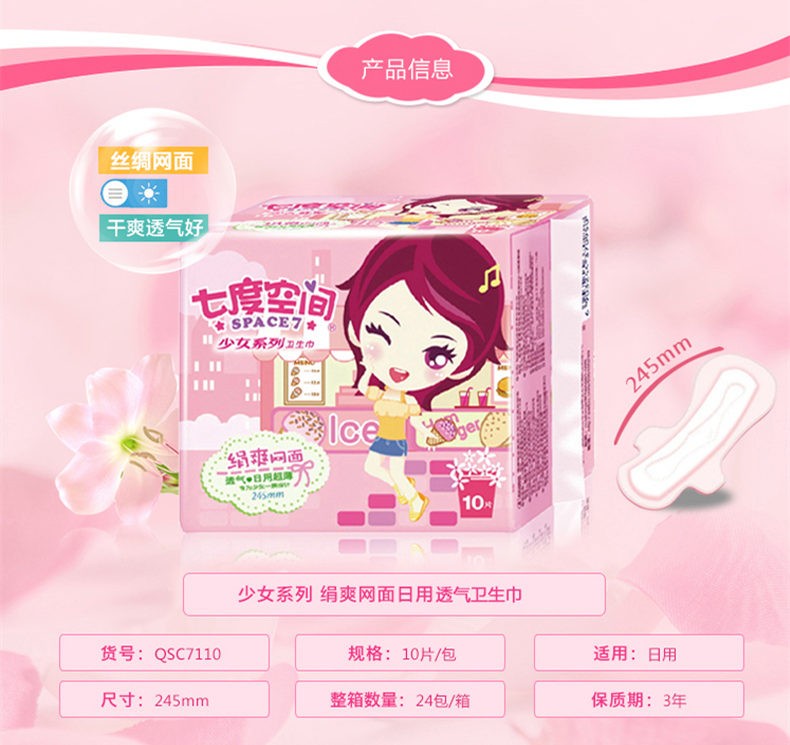 七度空间卫生巾 少女系列绢爽网面 超薄日用245mm 10片装