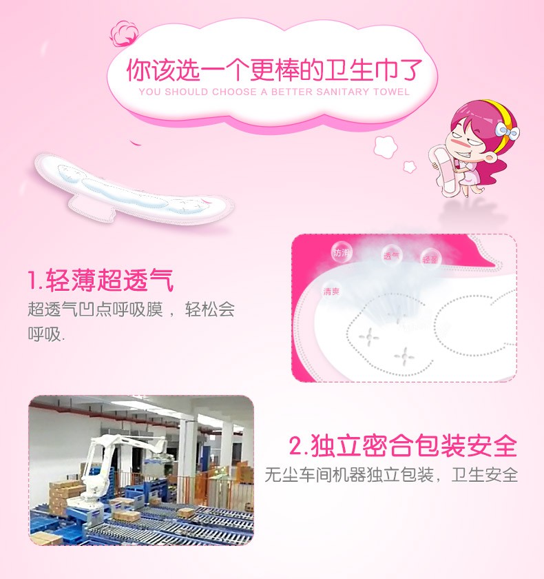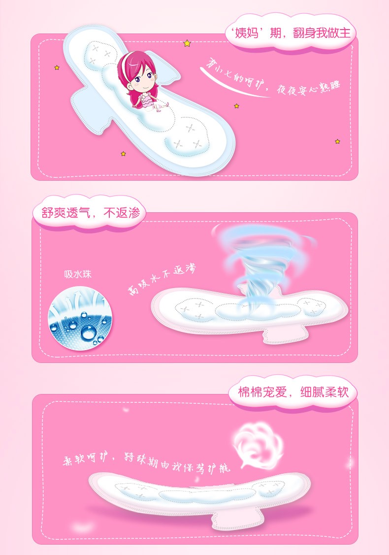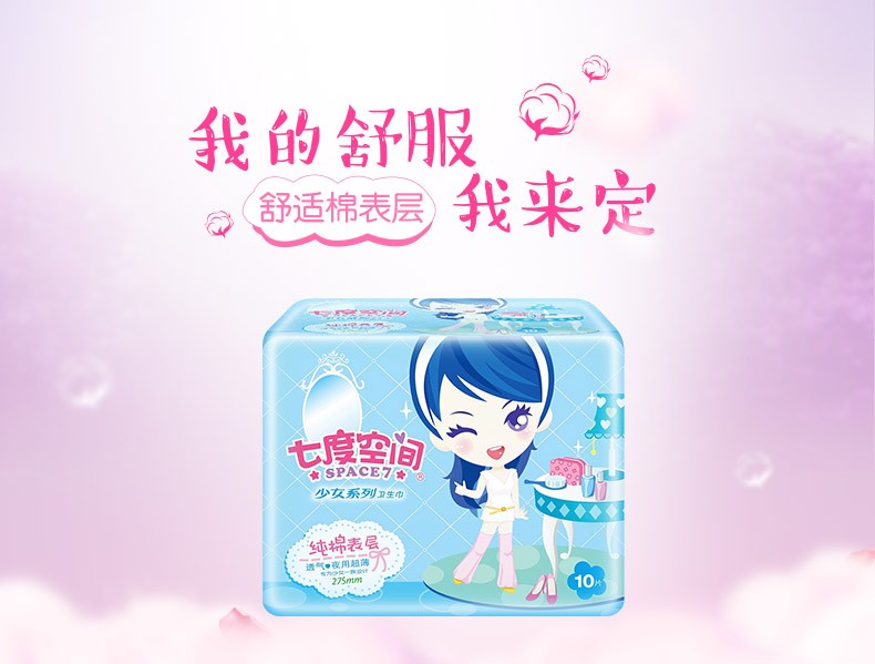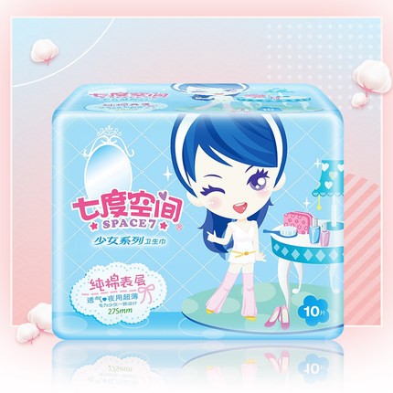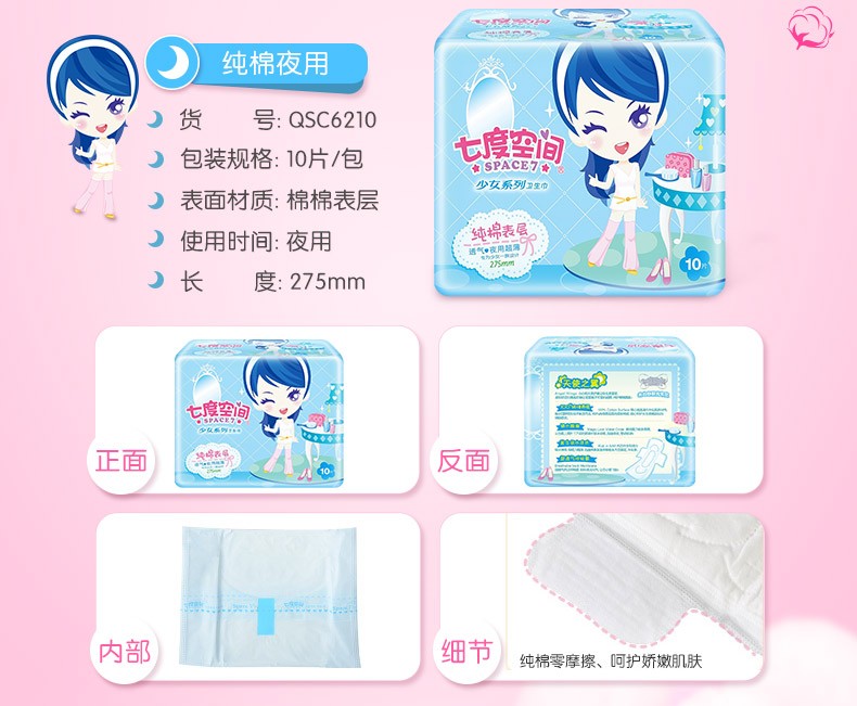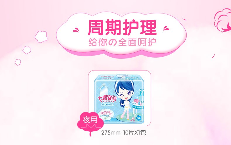 七度空间卫生巾 少女系列 纯棉表层超薄夜用275mm 10片装