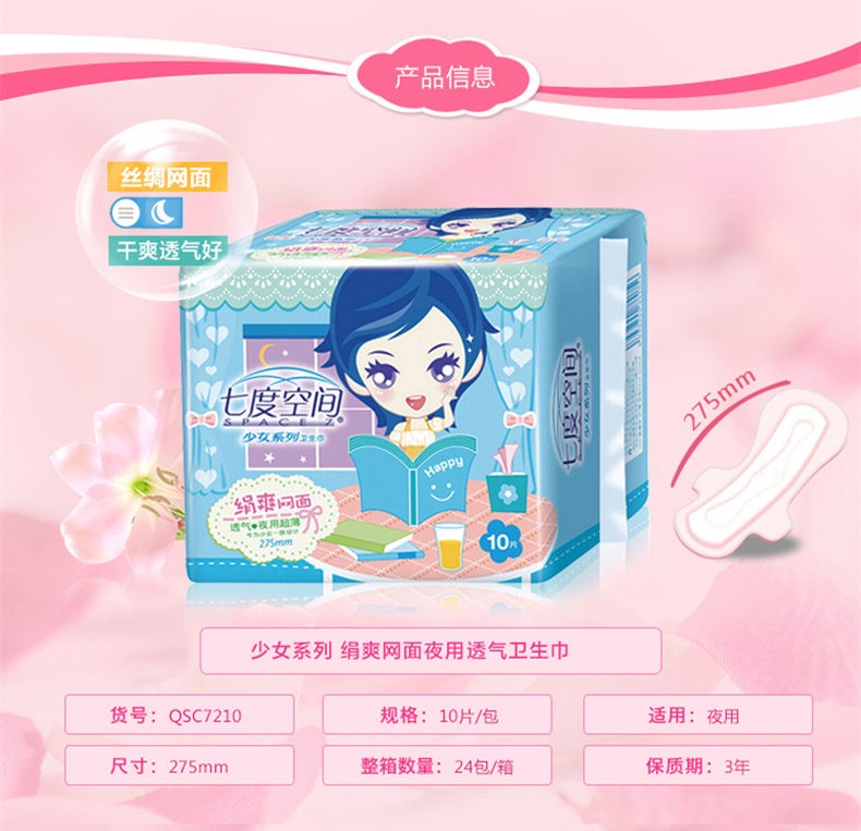 七度空间卫生巾 少女系列绢爽网面 超薄夜用275mm 10片装