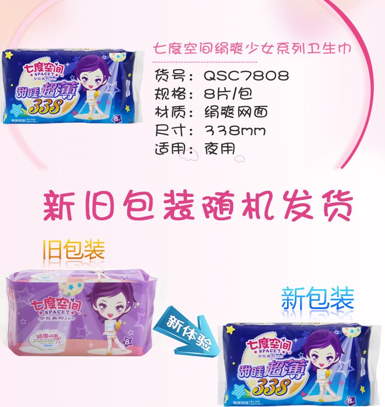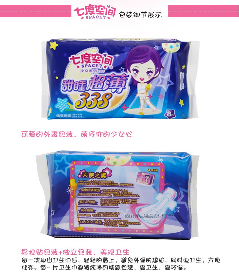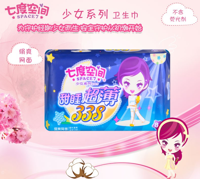 七度空间 卫生巾少女系列绢爽网面 超薄夜用338mm 8片装