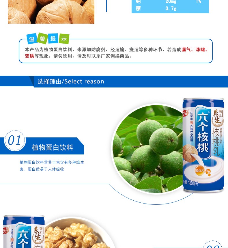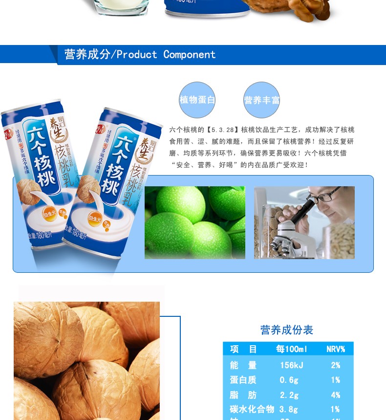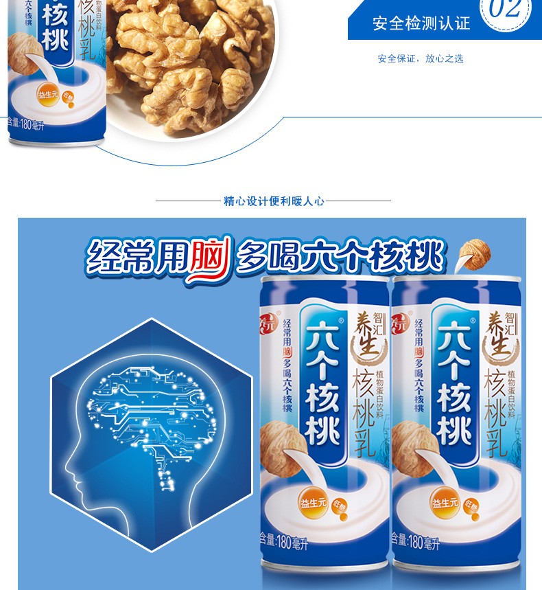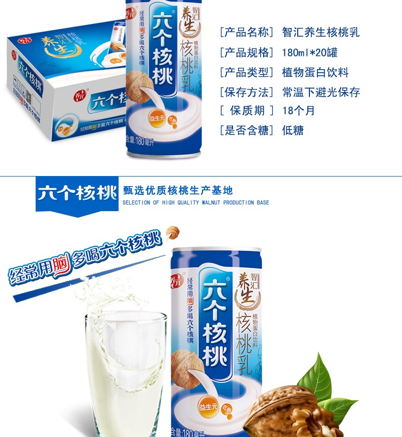 六个核桃 核桃乳饮品智汇养生180ml*20罐植物蛋白饮料