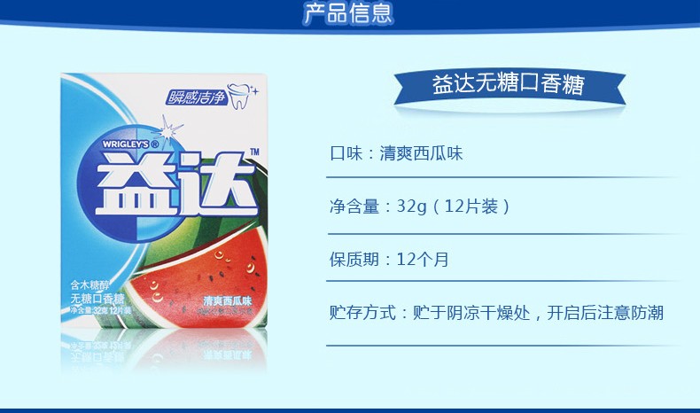 益达 无糖口香糖32g 清爽西瓜味木糖醇糖果零食