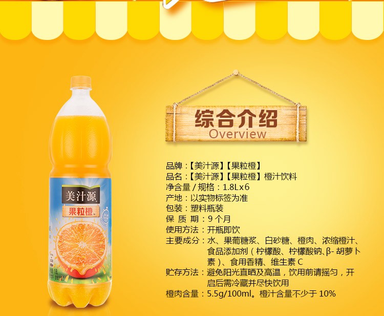 美汁源 果粒橙 果汁饮料 1.8L*6瓶 大瓶整箱装