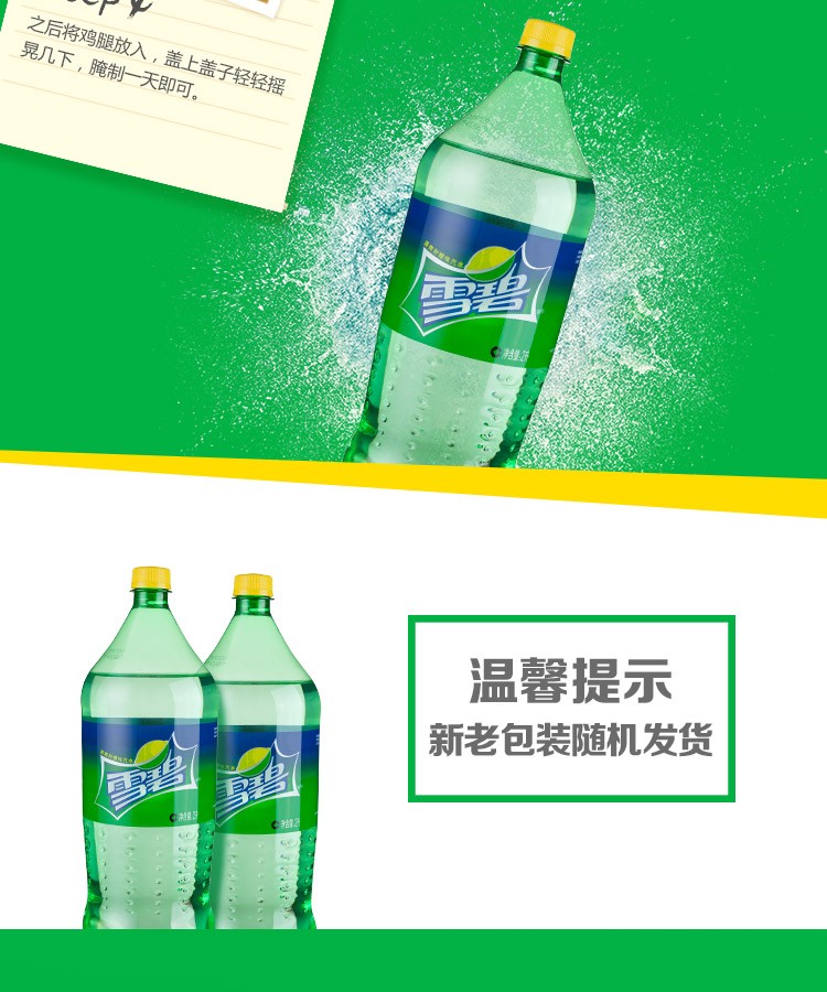 雪碧 饮料 汽水 2L*8瓶/箱 塑包装