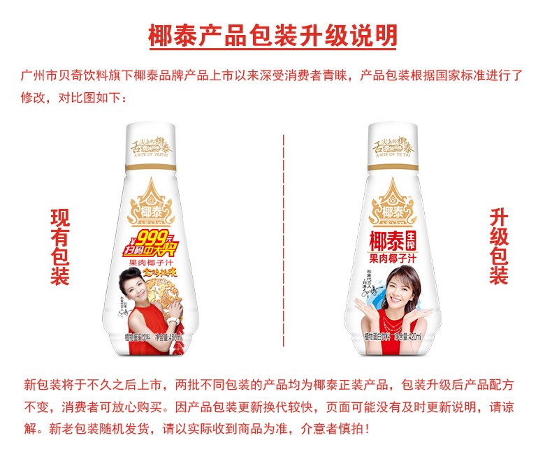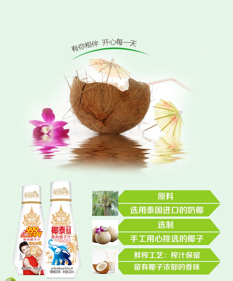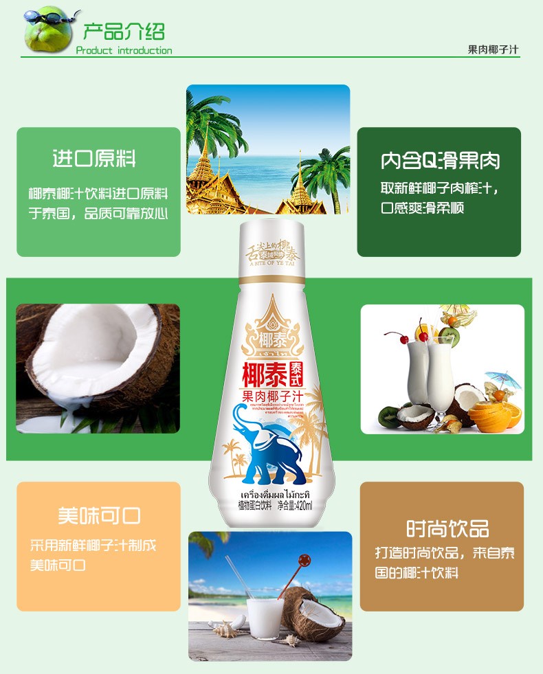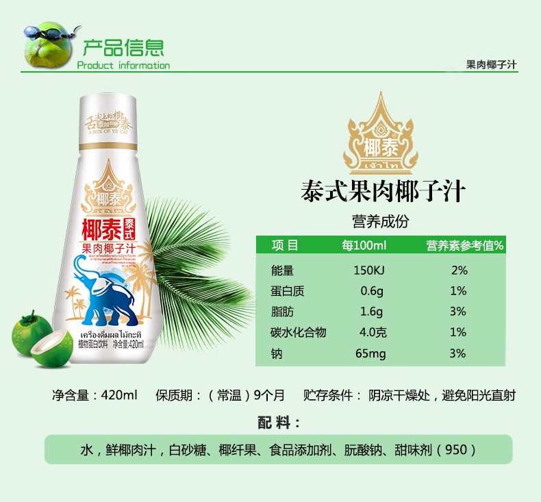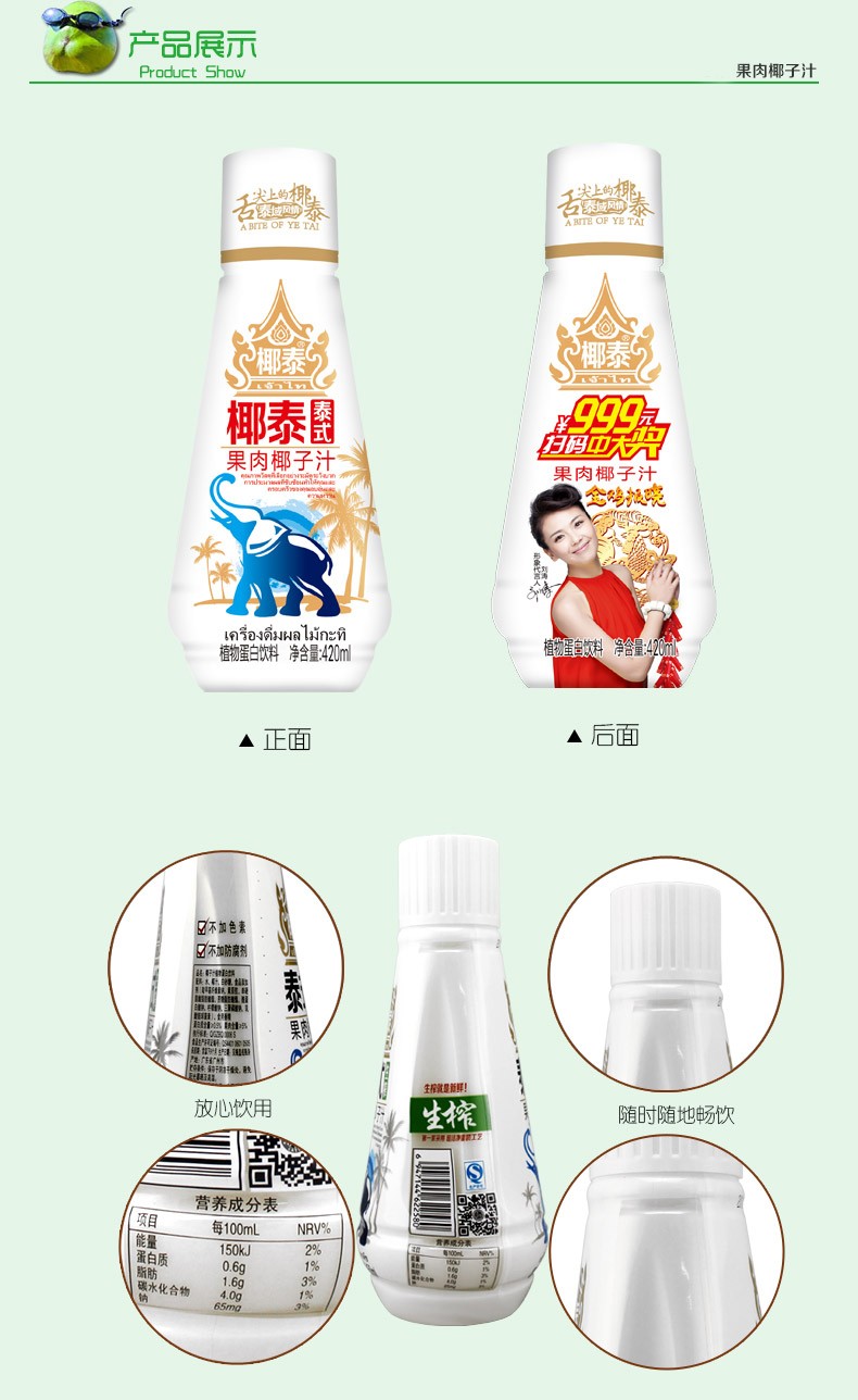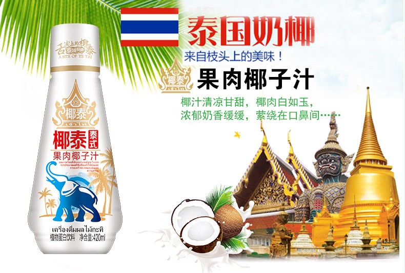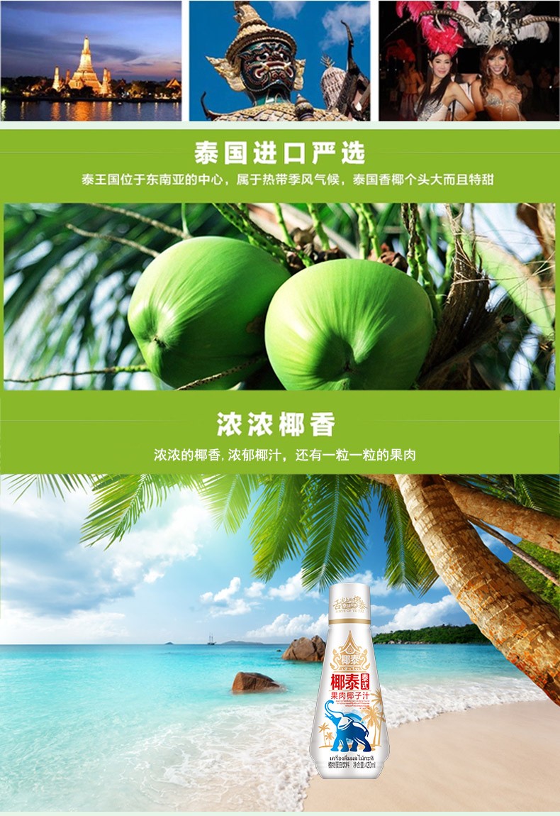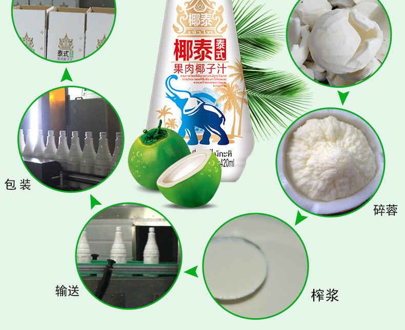 椰泰 泰式生榨果肉椰子汁420ml*15瓶整箱