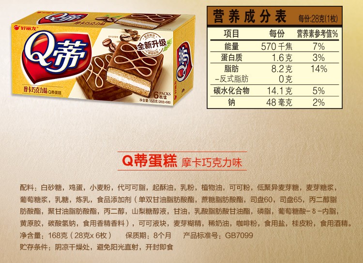 好丽友 Q蒂摩卡巧克力味 营养早餐点心零食 6枚168g/盒