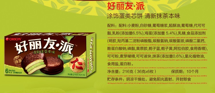 好丽友 清新抹茶本味6枚216g 休闲零食糕点小吃