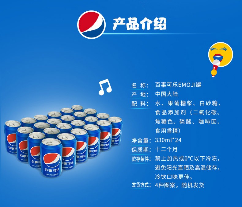百事可乐 碳酸饮料 330ml*24罐 整件