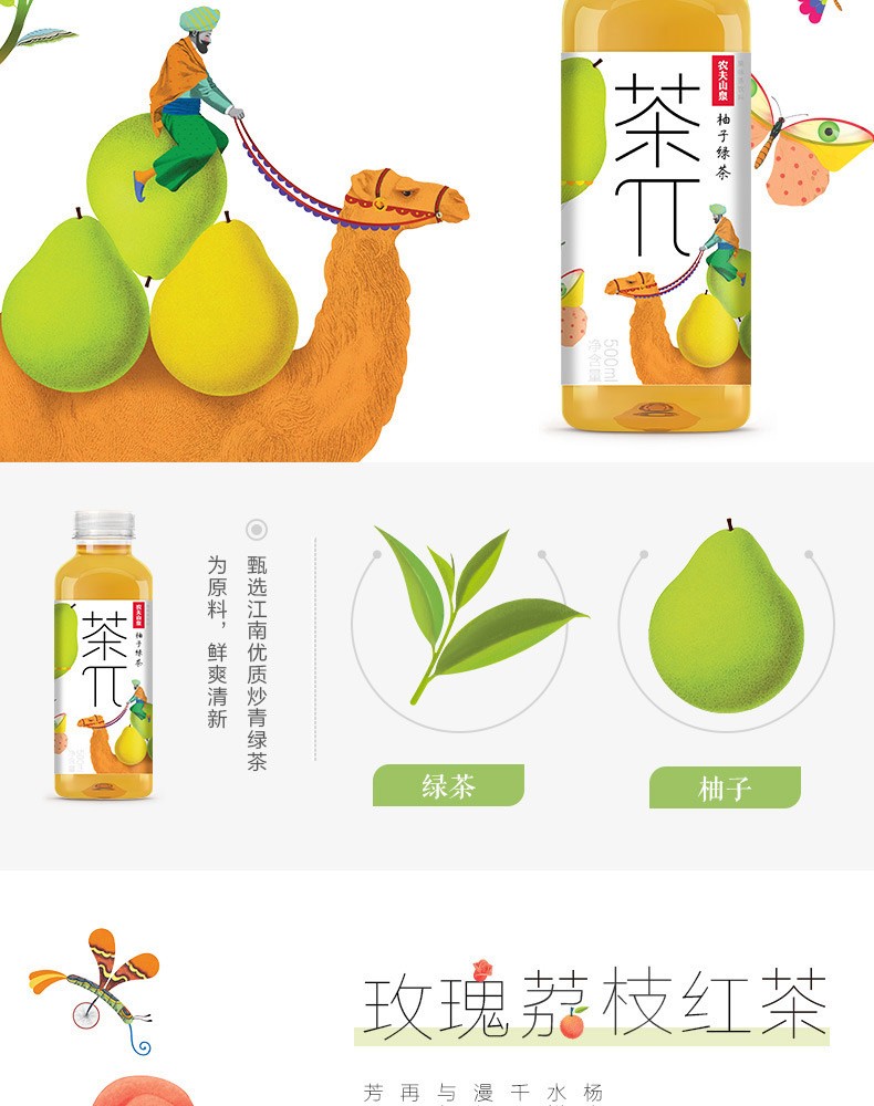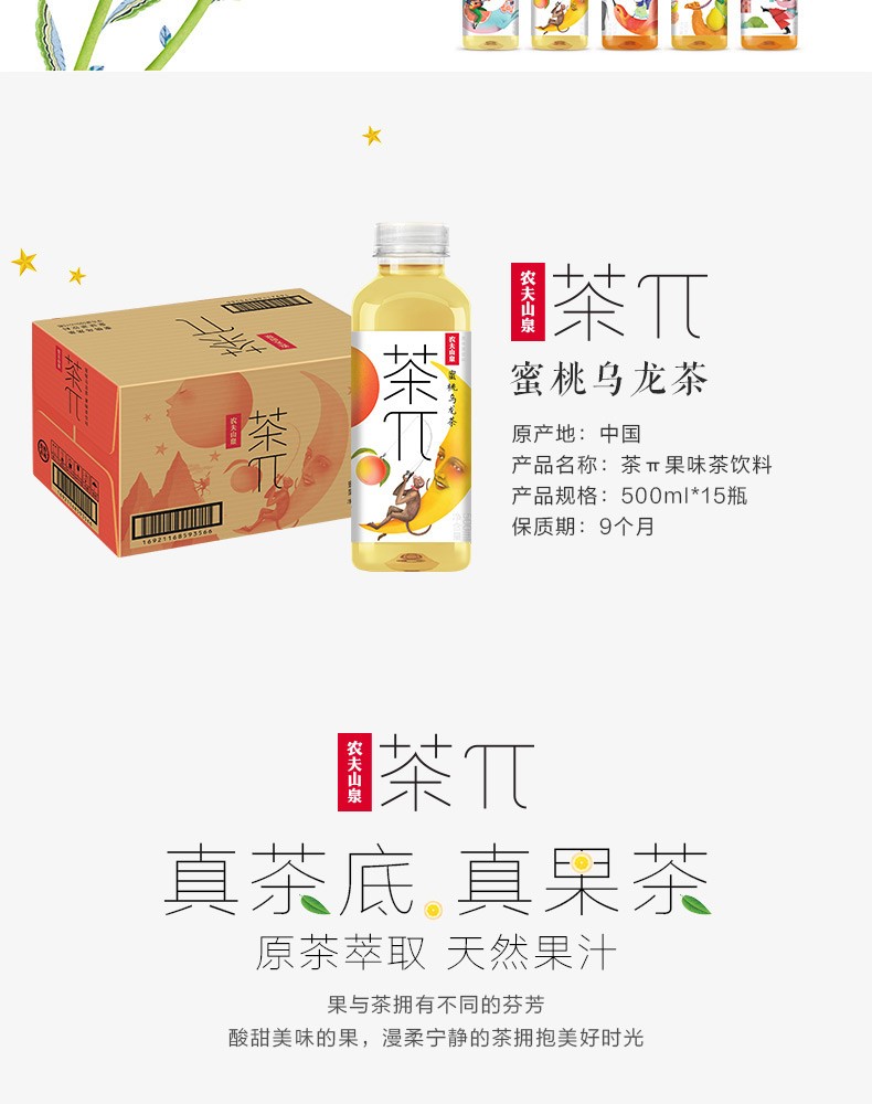茶派 蜜桃乌龙茶 果味茶饮料 500ml/15瓶 整箱 农夫山泉茶π