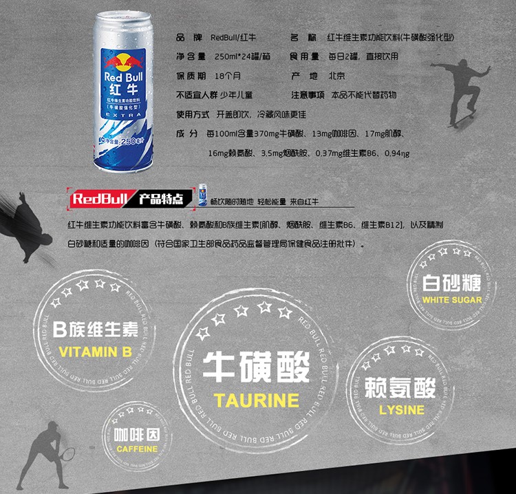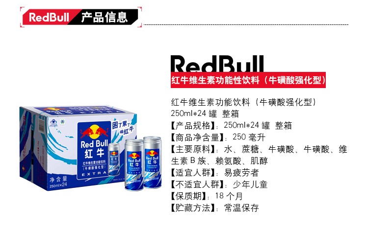 红牛 强化型 维生素功能饮料 250ml*24罐 整箱