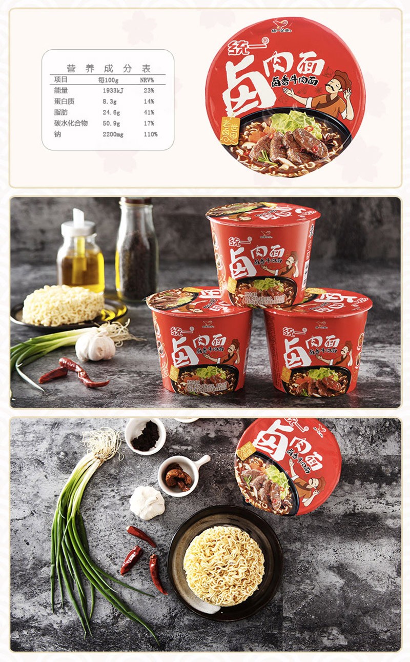 统一 方便面 卤肉面 卤香牛肉味 12桶 整箱装