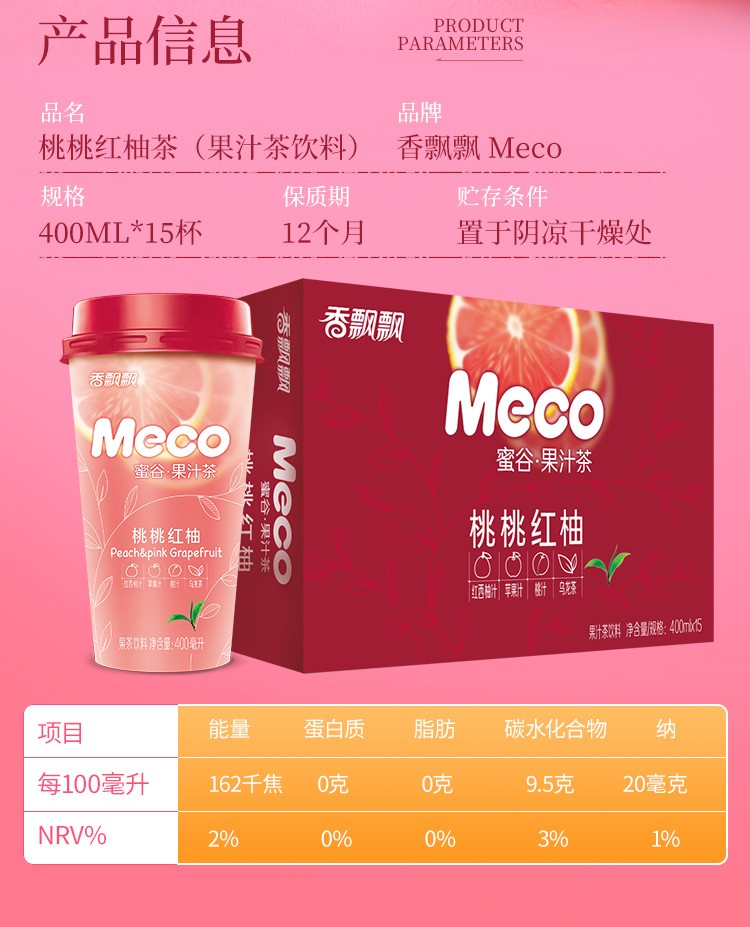 香飘飘奶茶 蜜谷果汁茶 桃桃红柚口味400ml 15杯 果汁茶饮料