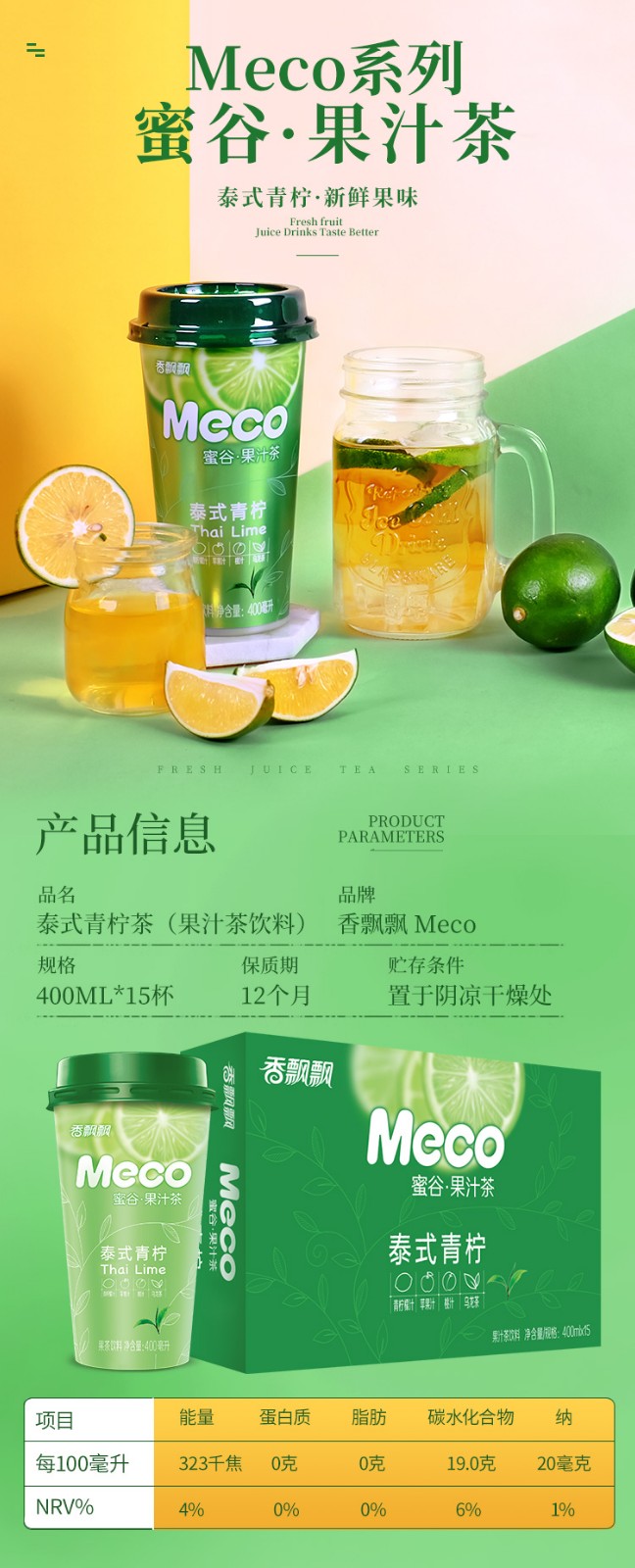 香飘飘奶茶 蜜谷果汁茶 泰式青柠口味400ml 1杯