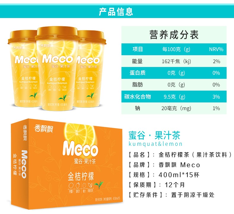香飘飘奶茶 蜜谷果汁茶 金桔柠檬口味400ml 15杯