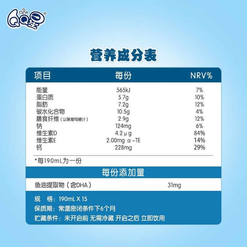 伊利 QQ星儿童成长牛奶(全聪型)190ml*15盒