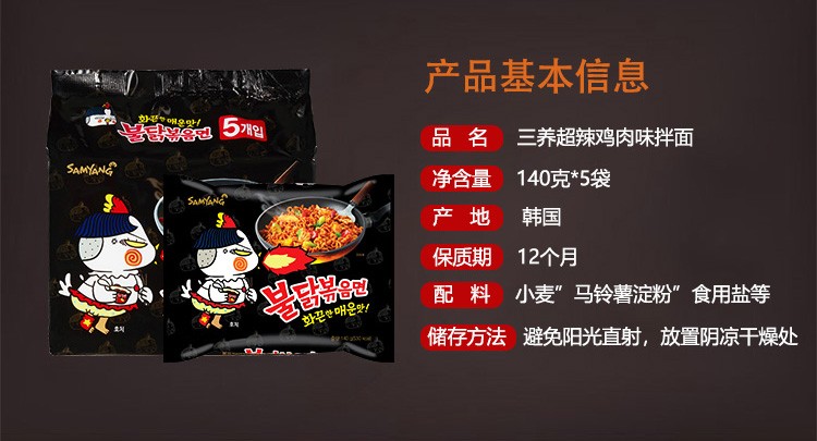 韩国直采 三养方便面 火鸡面 超辣鸡肉味拌面 140g