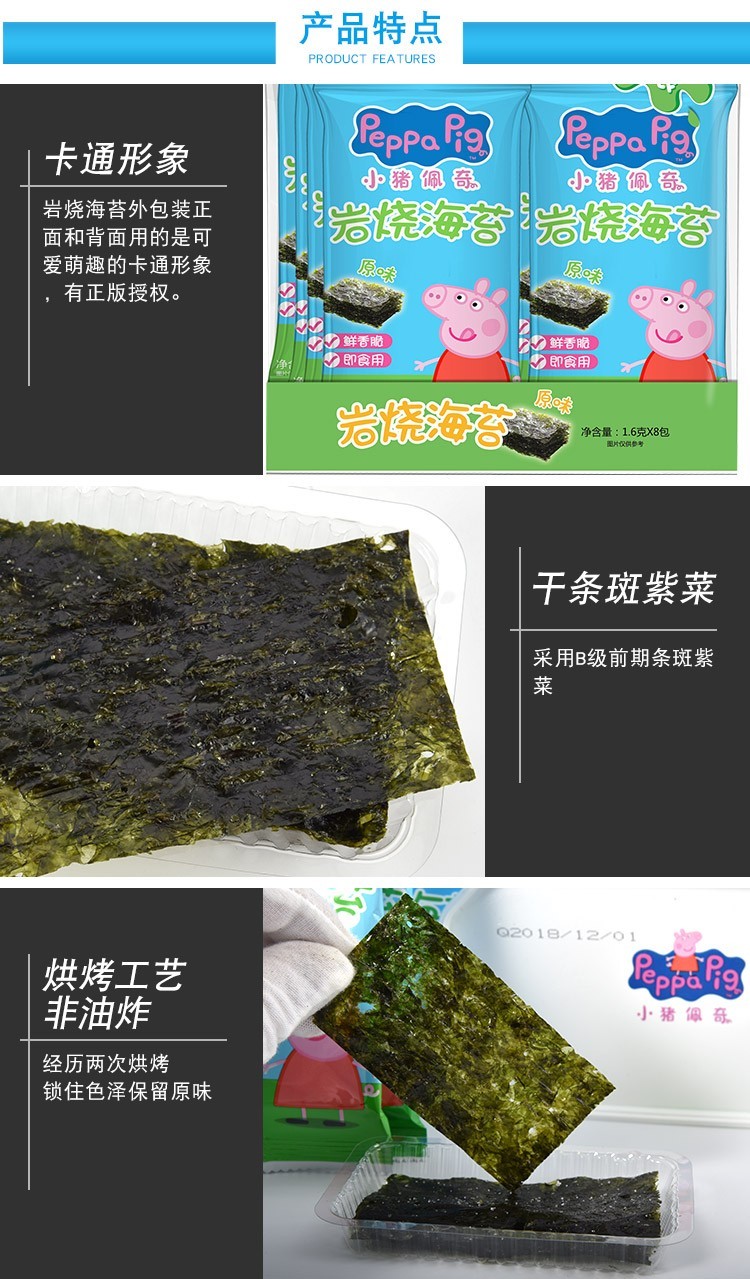 小猪佩奇 原片海苔 香脆紫菜烤海苔片 儿童休闲零食 微盐辅食 1.5g