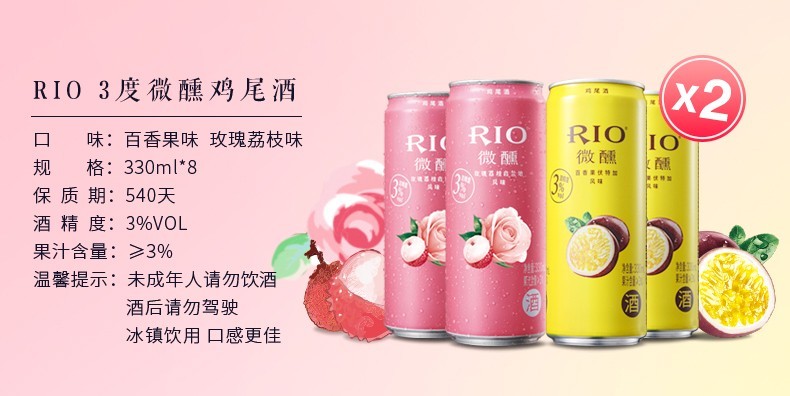 RIO锐澳 微醺 玫瑰荔枝味鸡尾酒 330ml