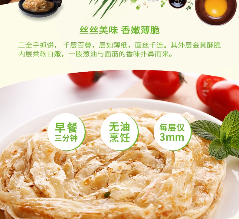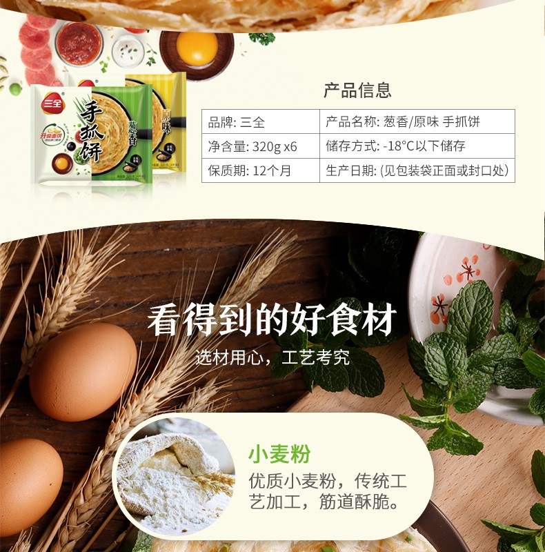 三全 速冻千丝葱香手抓饼 皮薄煎饼 320g/4片装