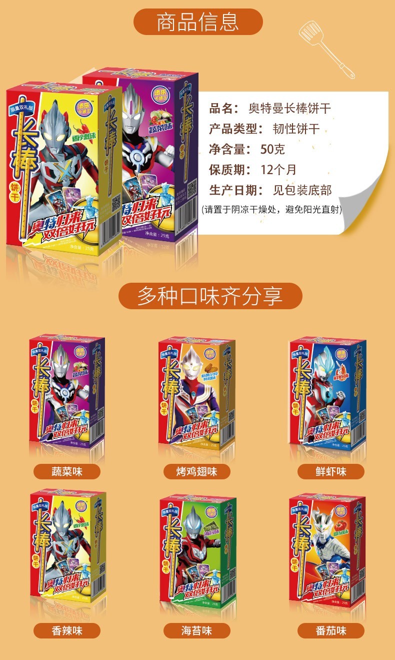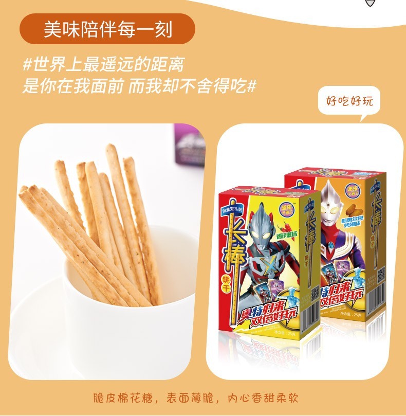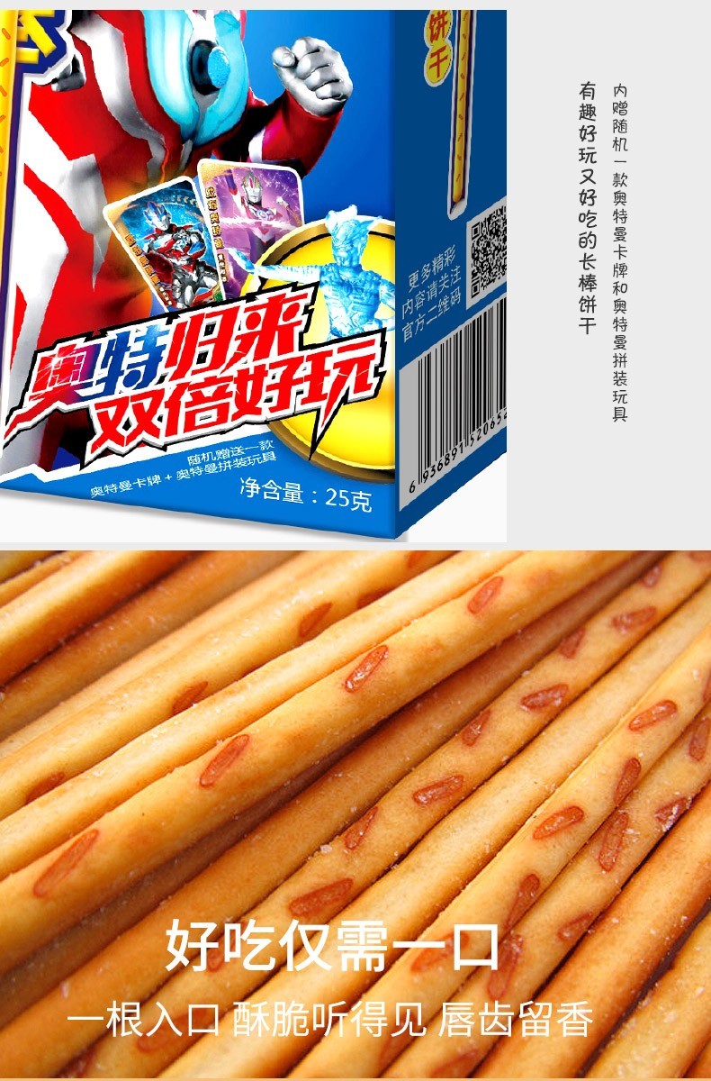 添乐 奥特曼长棒饼干 儿童休闲零食 1盒装(内带卡牌+玩具)