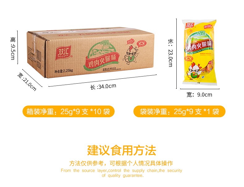 双汇 鸡肉肠火腿肠225g/袋(25g*9支)香肠肉类 小吃泡面搭档