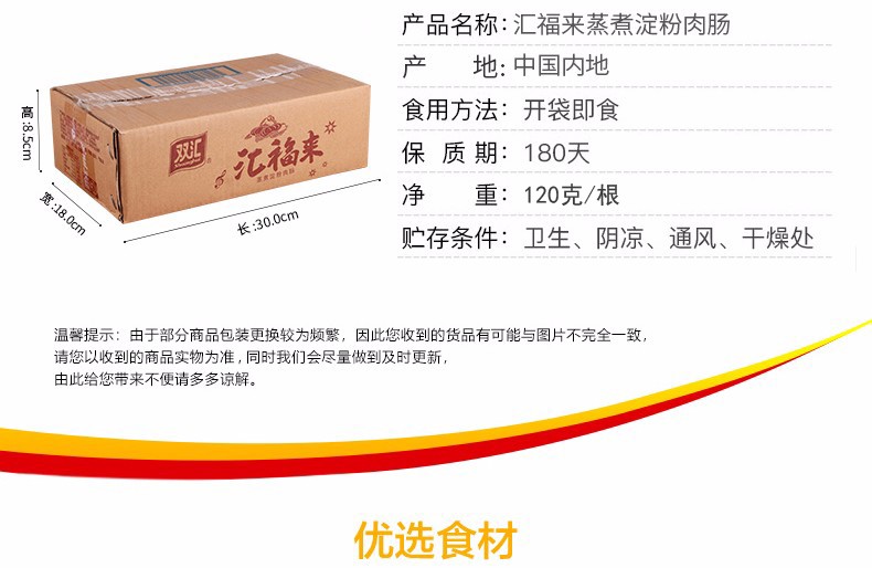 双汇 汇福来蒸煮淀粉肉肠120g 休闲方便肉类火腿肠零食品