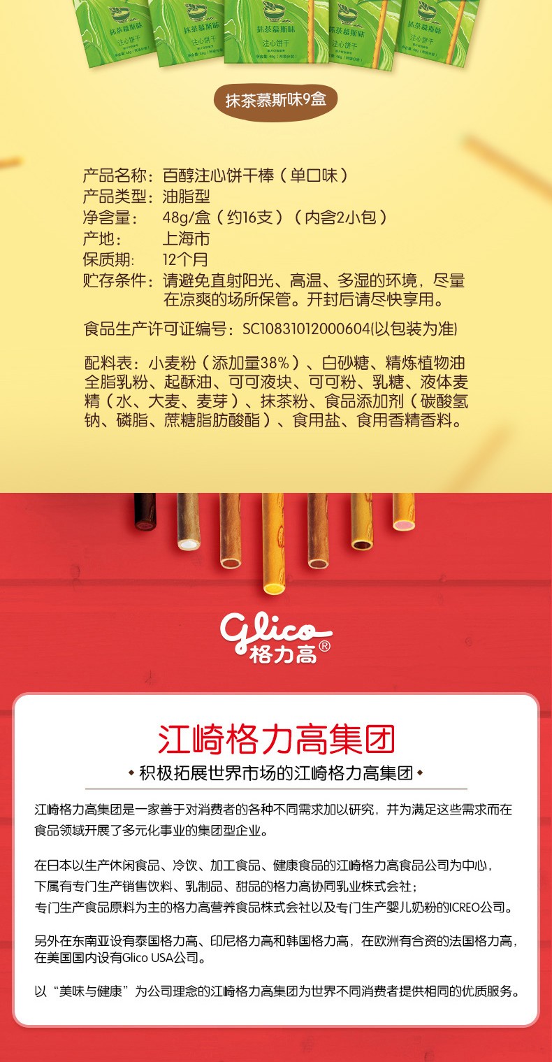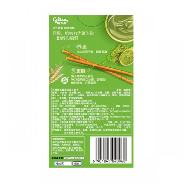 格力高 百醇抹茶慕斯 48g 注心巧克力饼干棒 夹心休闲零食
