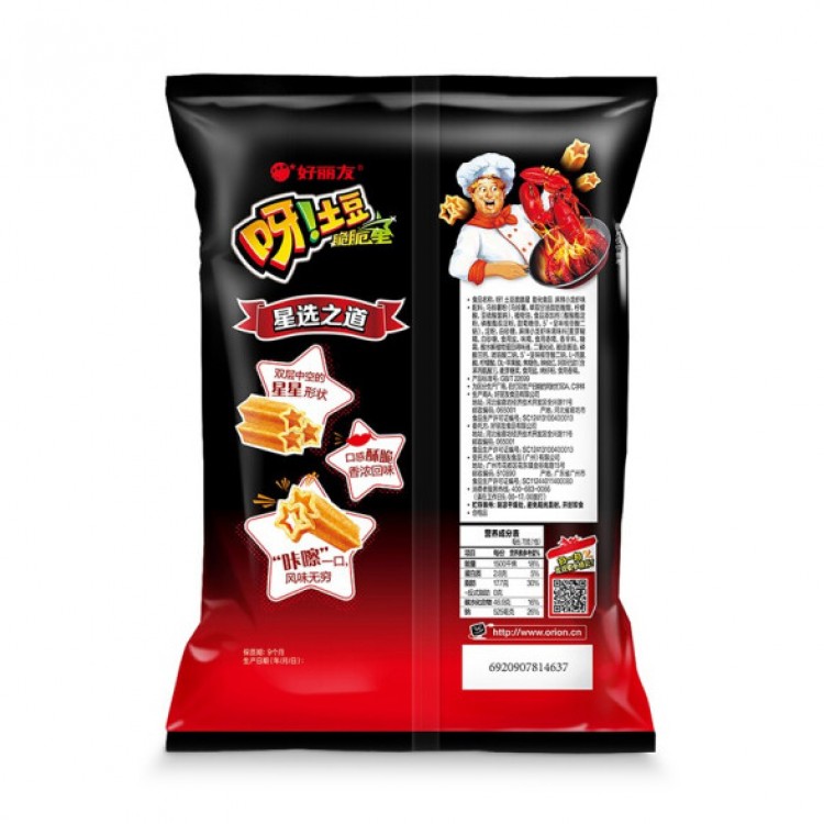 好丽友 呀土豆 麻辣小龙虾味70g 脆脆星薯条薯片 膨化食品休闲零食
