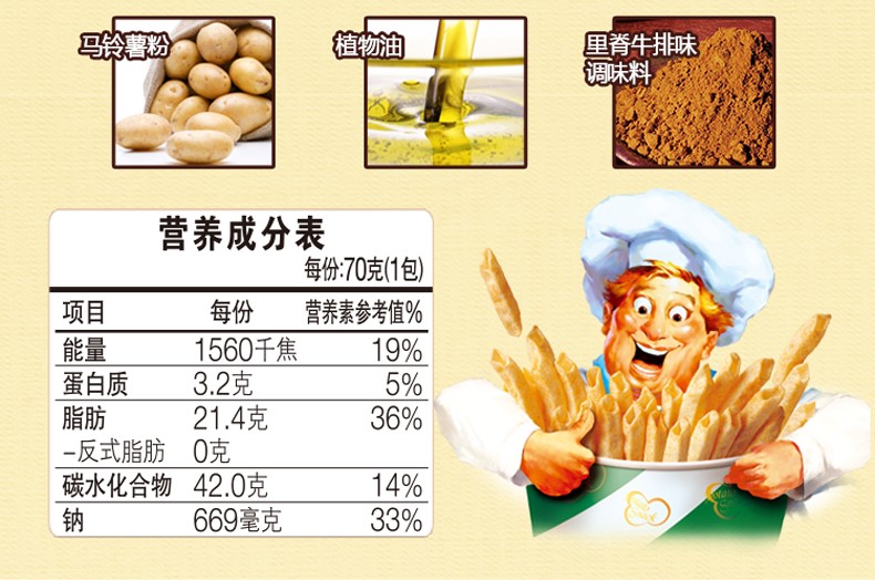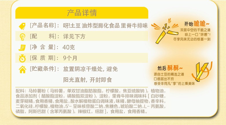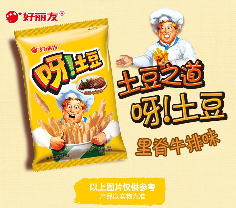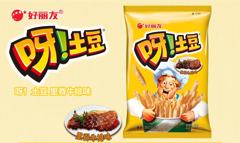 好丽友 呀土豆里脊牛排味40g/袋 休闲零食 膨化薯条薯片