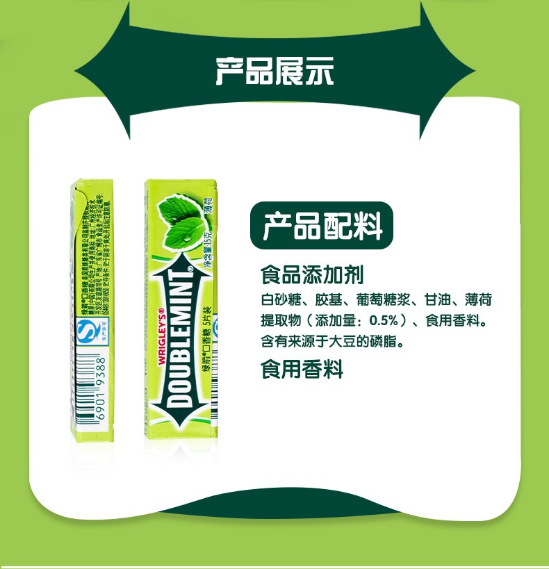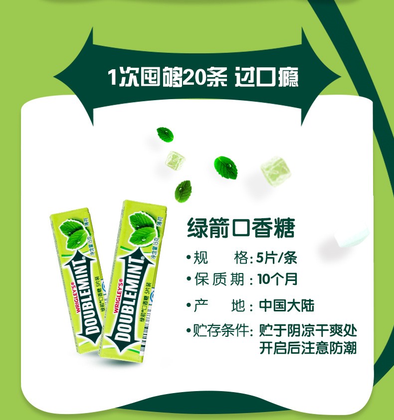 箭牌口香糖 5片装/1条 绿箭薄荷味清新口气