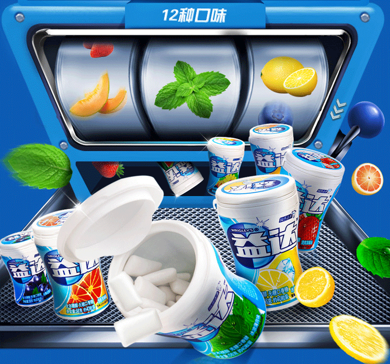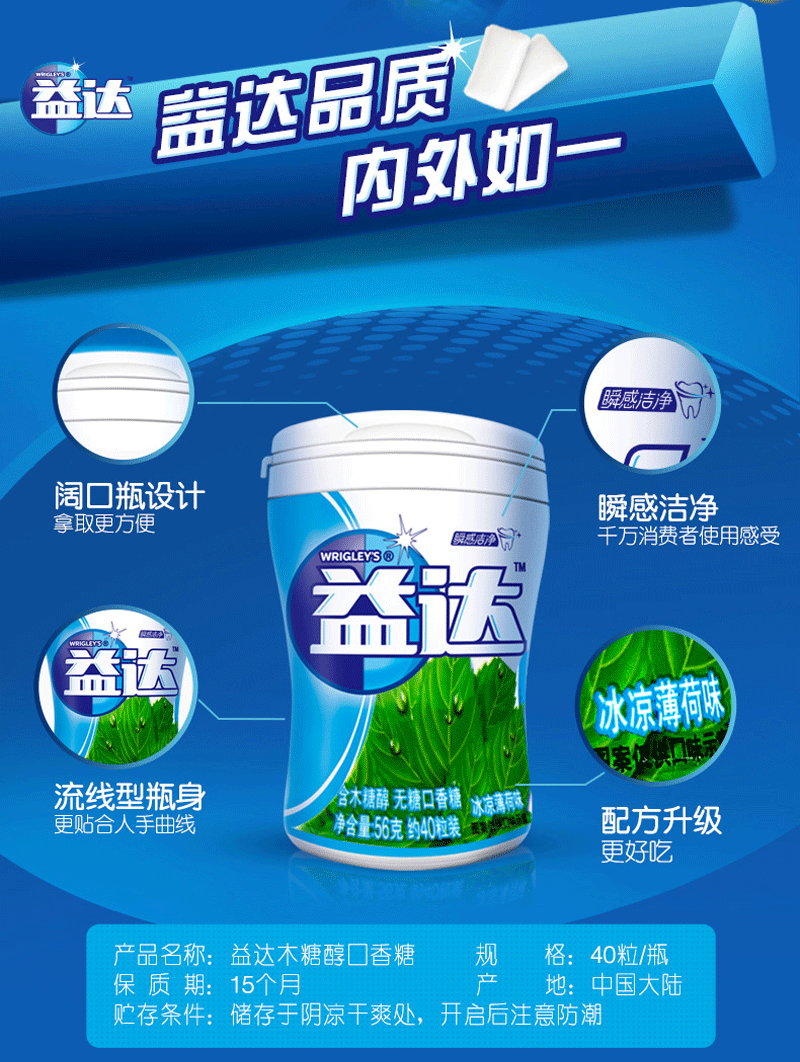 箭牌 益达木糖醇 西瓜味无糖口香糖56g 单瓶约40粒