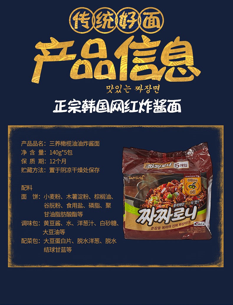 三养 炸酱面 140g/袋 方便面韩式杂酱拉面 速食干拌面泡面 韩国进口